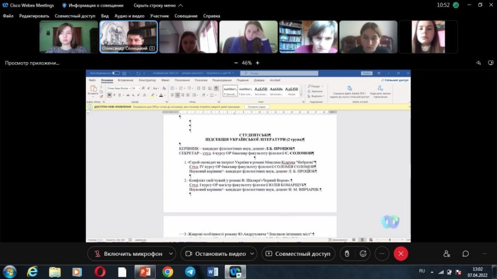 14 квітня 2022 року у межах міжуніверситетського онлайн-лекторію, в якому беруть участь викладачі трьох університетів – Прикарпатського національного університету імені Василя Стефаника, Тернопільського національного педагогічного університету імені Володимира Гнатюка та Дрогобицького державного педагогічного університету імені Івана Франка, доцент кафедри української Читати далі