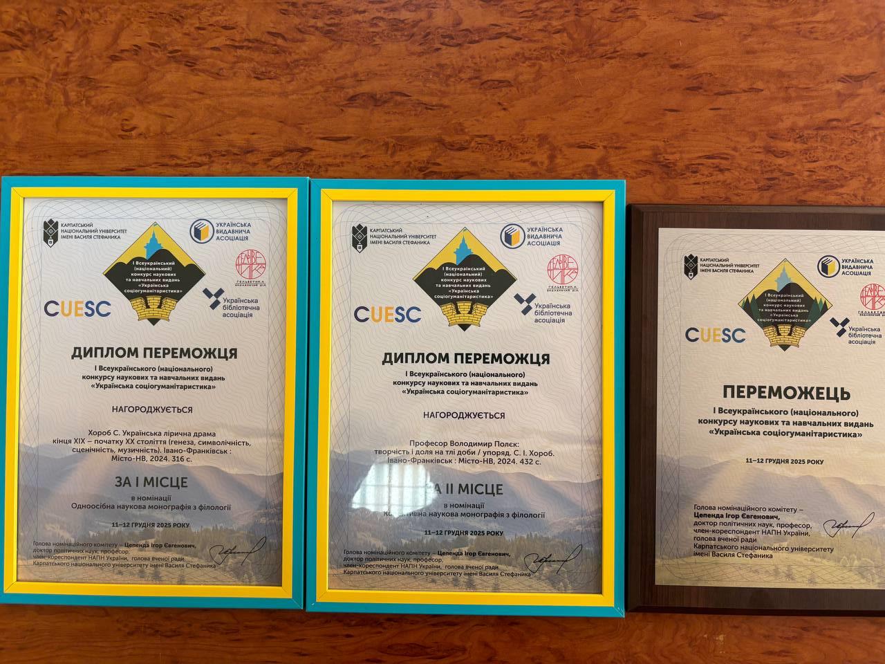 ІІ місце в номінації колективна наукова монографія з філології за працю: Професор Володимир Полєк: творчість і доля на тлі доби / упоряд. С.І. Хороб. Івано-Франківськ: Місто НВ, 2024. 432 с.